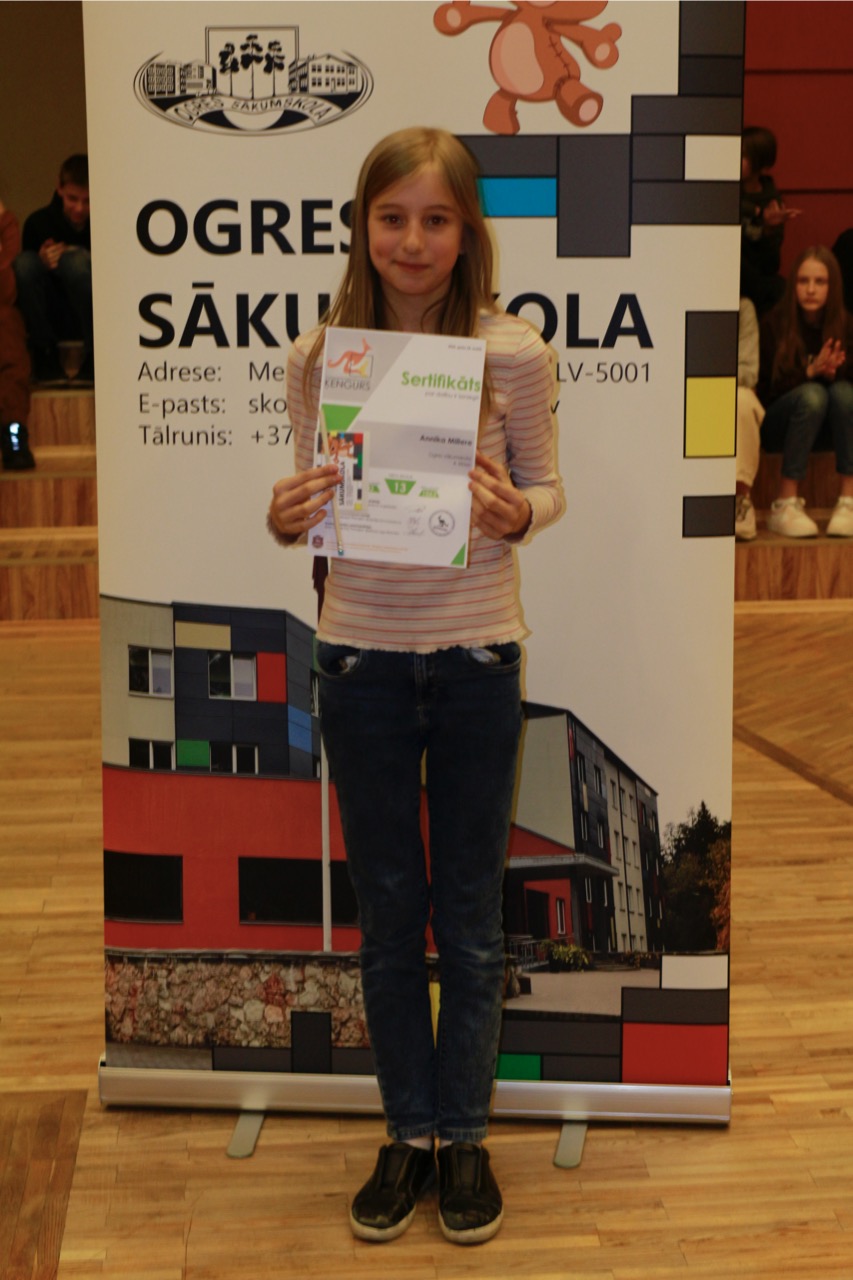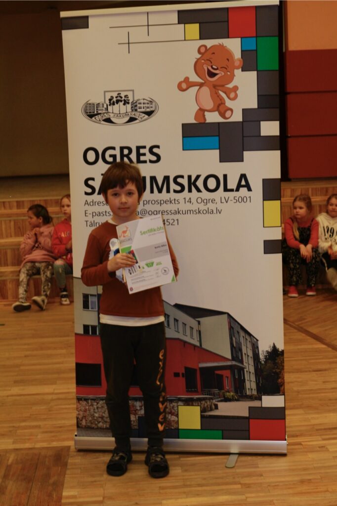 Apbalvojām Ogres sākumskolas skolēnus par piedalīšanos skolas un novada matemātikas olimpiādēs, konkursos “MIKSIKE” un “ĶENGURS”.