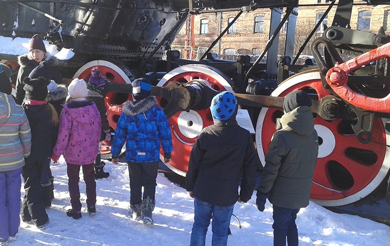 Ekskursijas laikā skolēni uzzināja par Dzelzceļa muzeja krājuma raksturīgāko Ritekļu kolekciju – lokomotīvēm, vagoniem un citu sliežu ceļu tehniku.